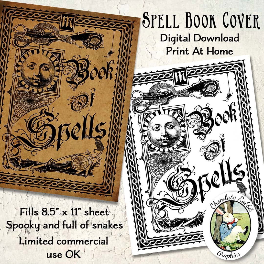 Witch Spell Book Cover Halloween Vintage Style Digital Etsy